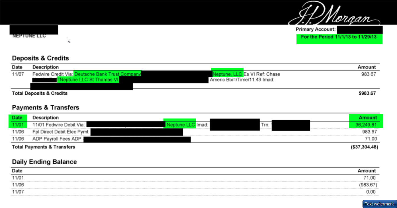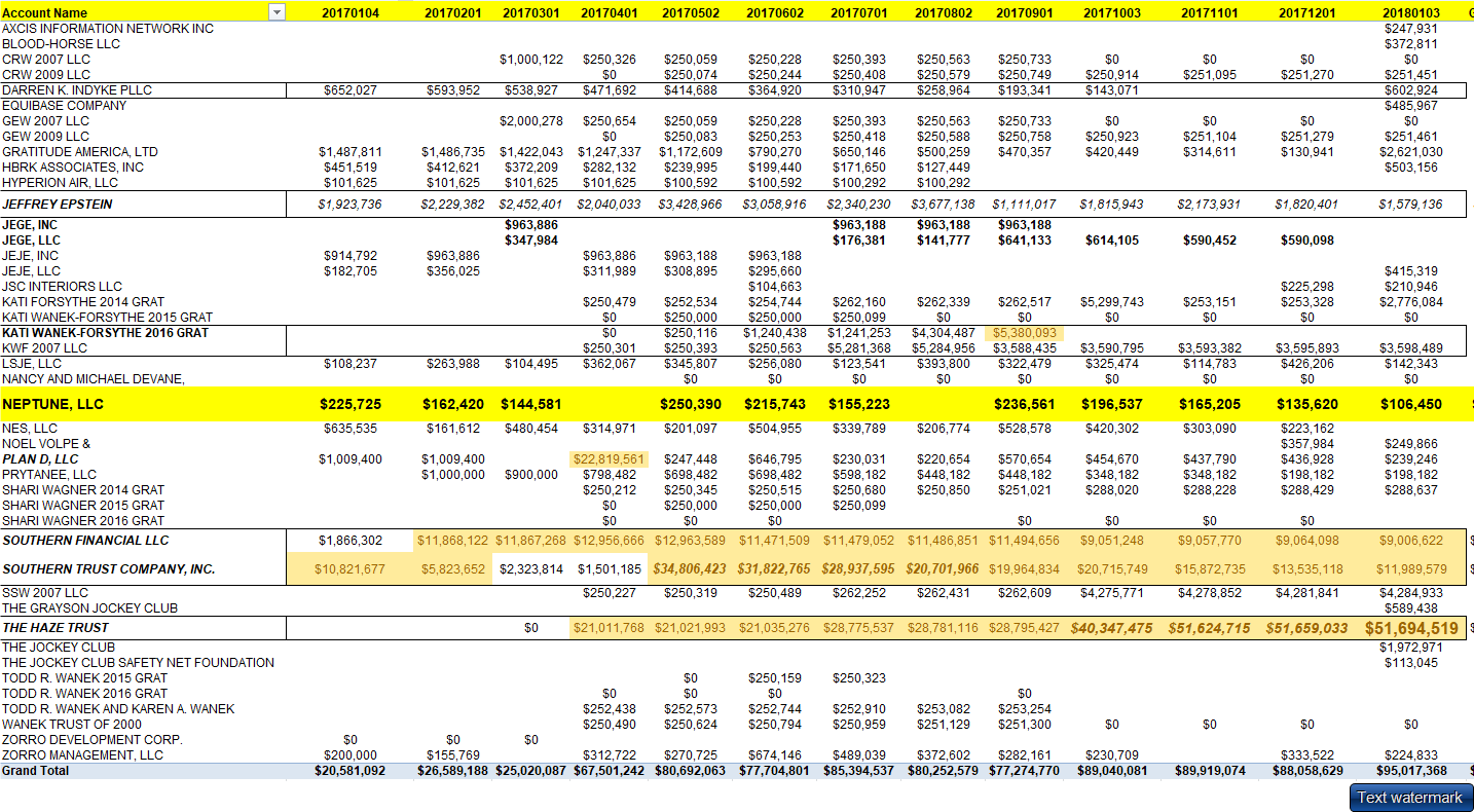 NEPTUNE LLC is one of a myriad of companies of JEFFREY EPSTEIN. GENERALLY, at least from my 2014 and 2017 analysis of his financial records, EPSTEIN held only about $100,000 to $200,000 in this particular account. (MORE than I have ever had in any bank account in my entire life by a factor of 5-10x).