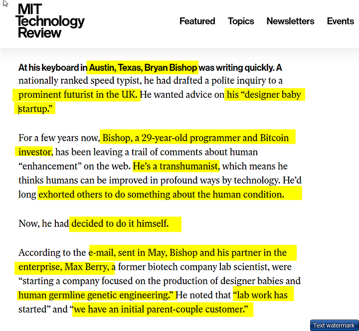 Bryan Bishop 2019: https://www.technologyreview.com/2019/02/01/239624/the-transhumanist-diy-designer-baby-funded-with-bitcoin/